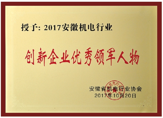 榮獲安徽機電創(chuàng)新企業(yè)優(yōu)秀領(lǐng)軍人物