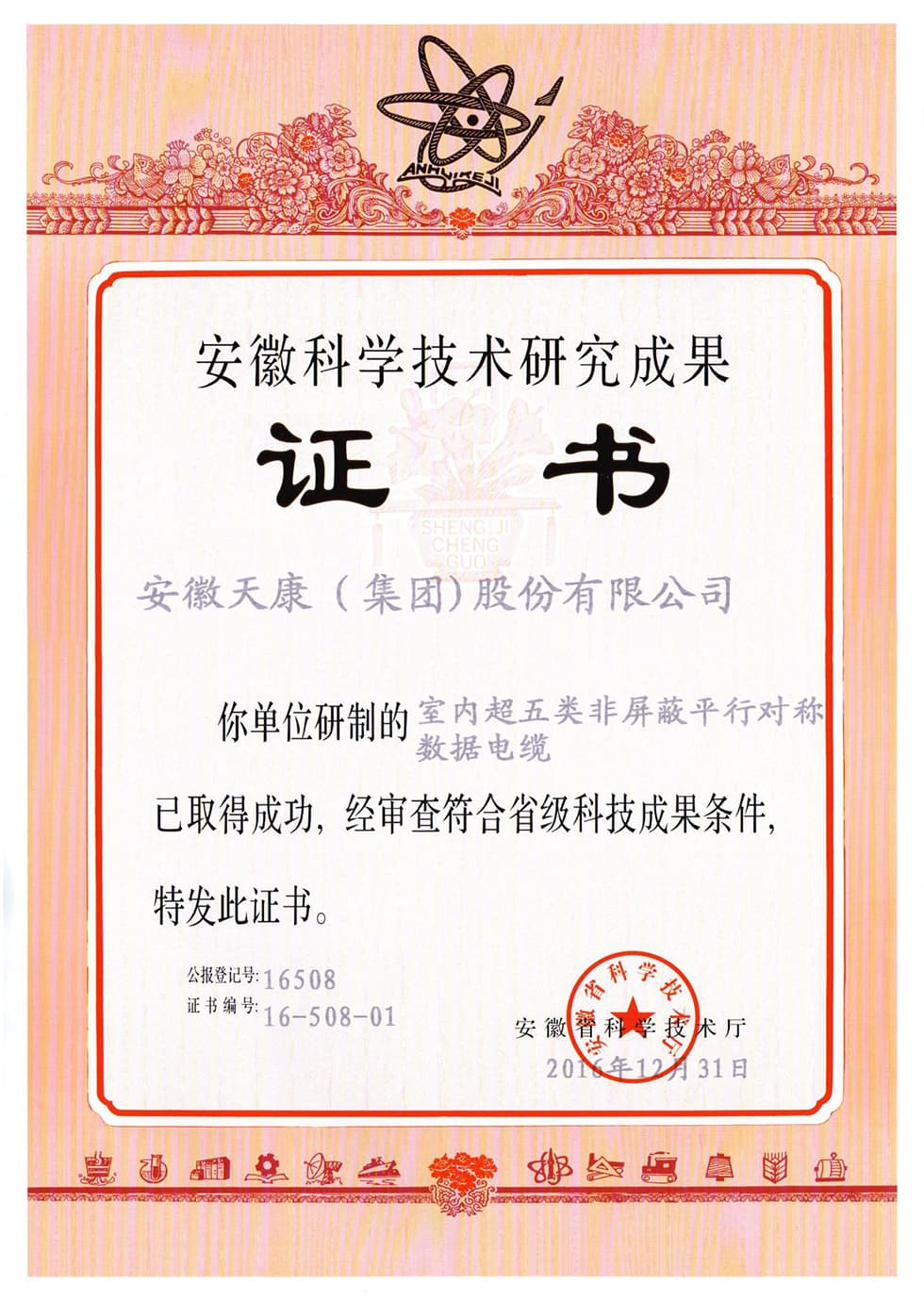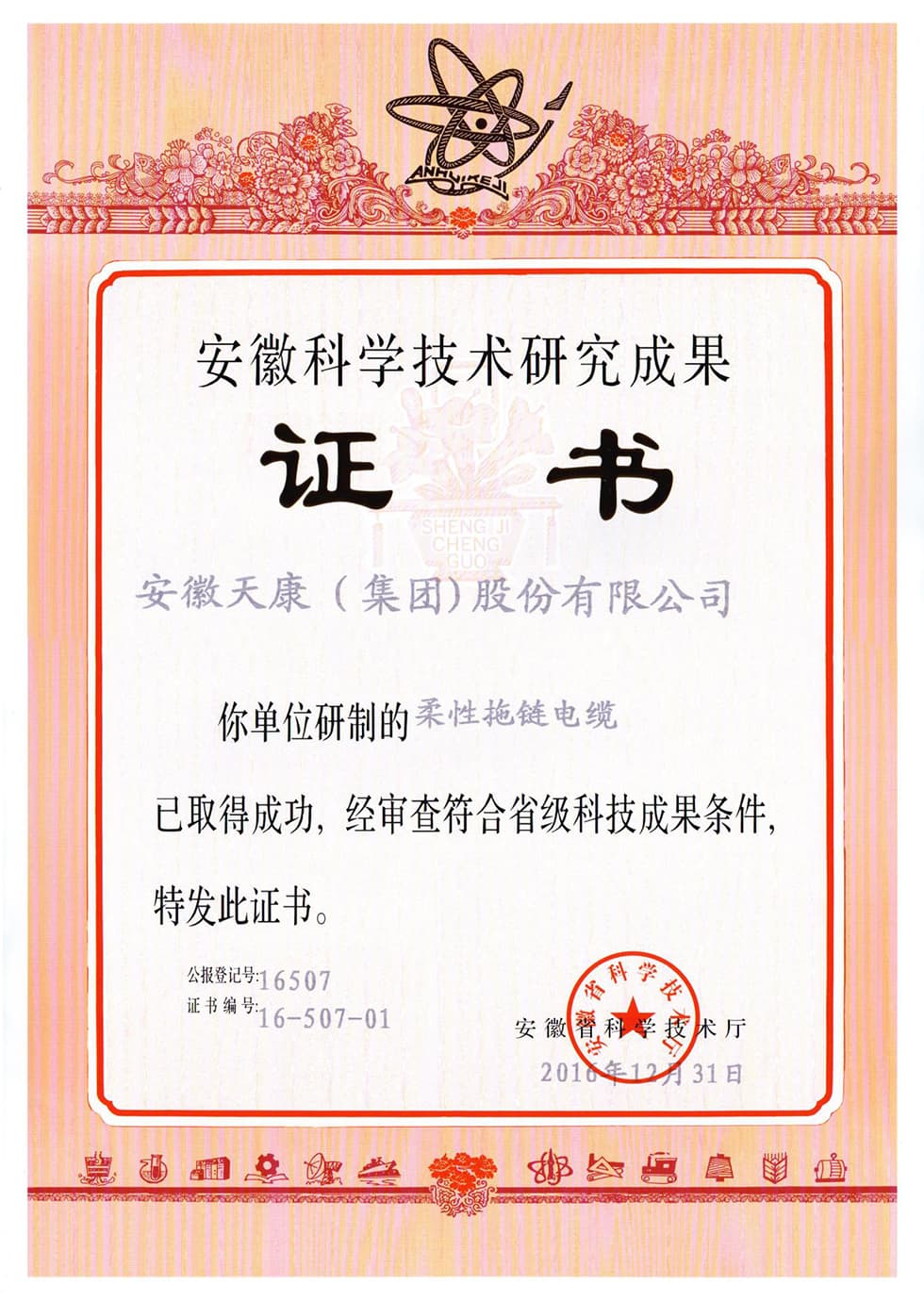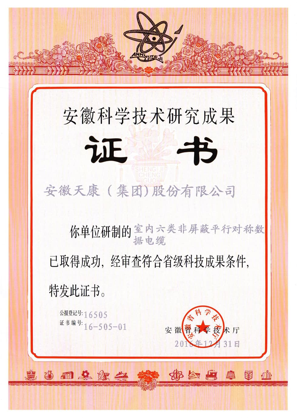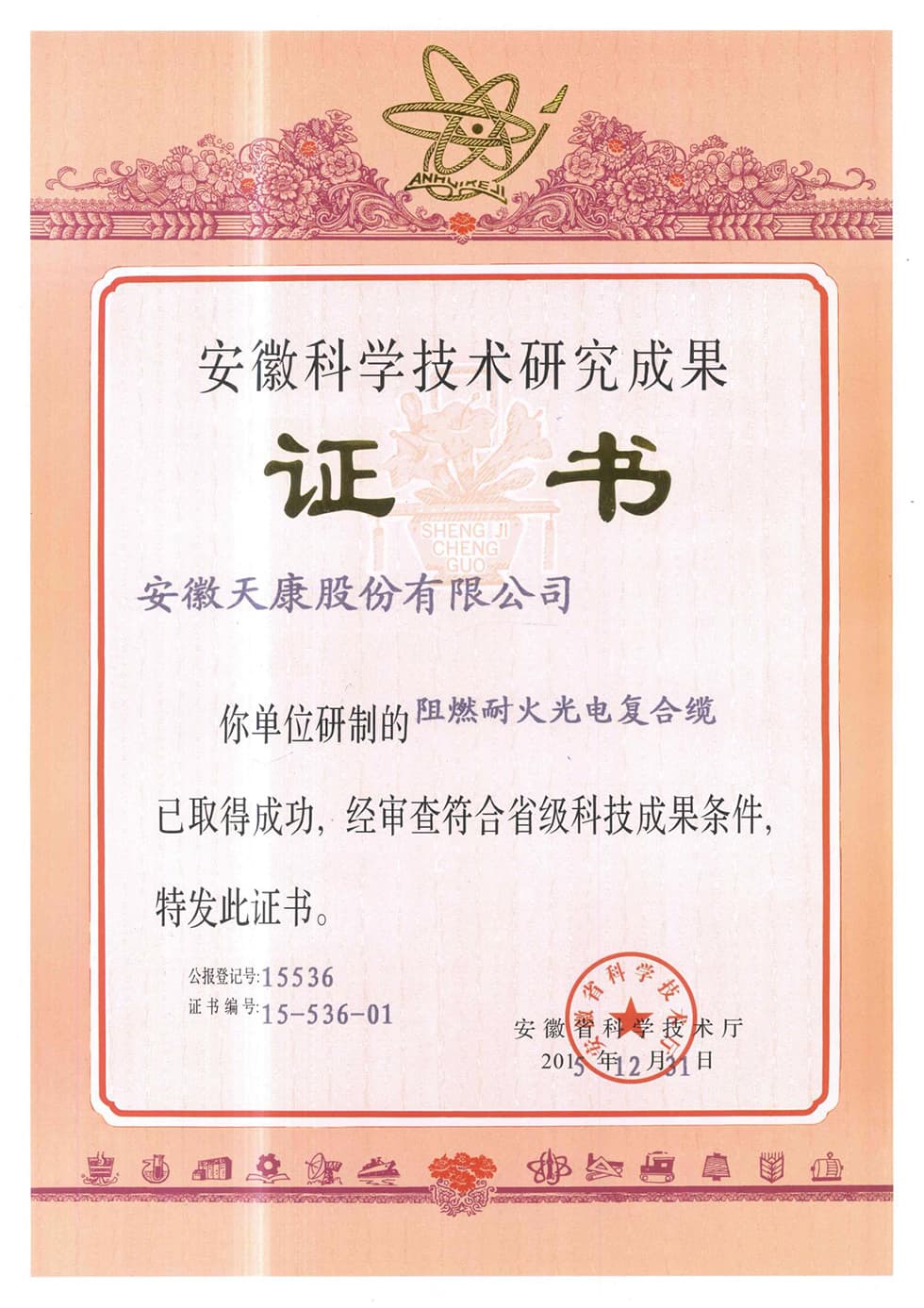省級(jí)科研成果證書